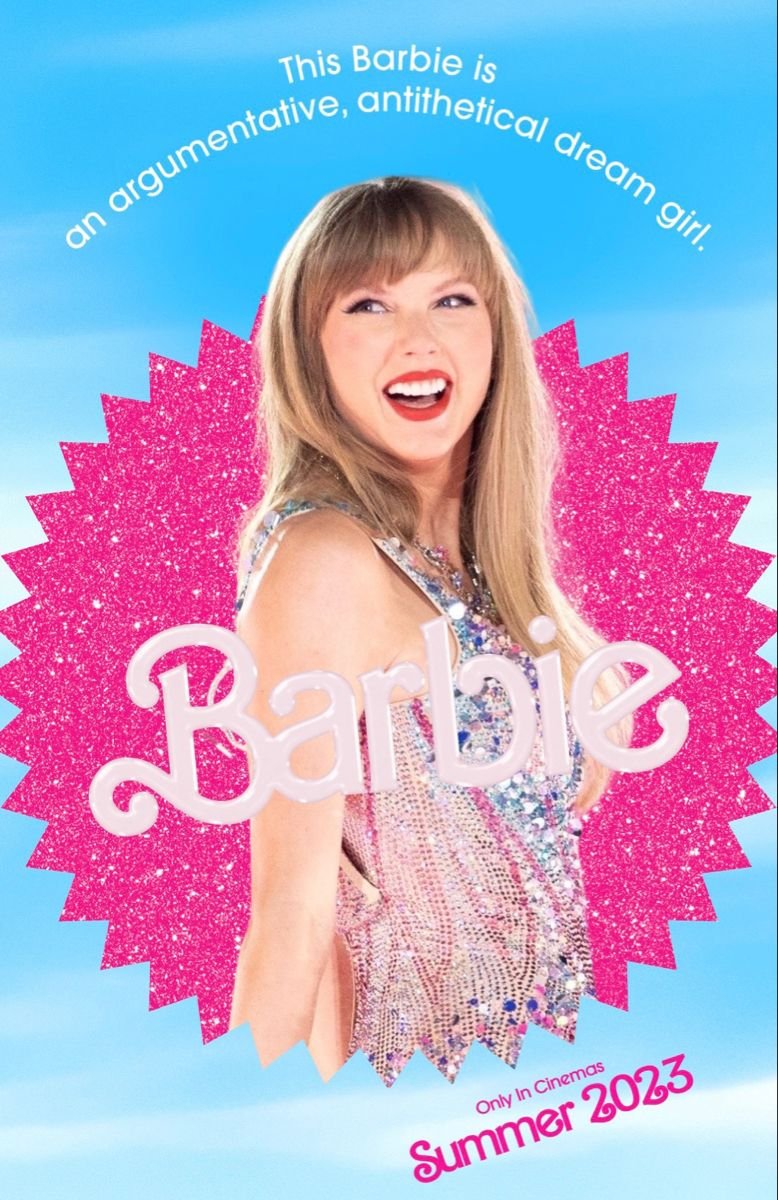 A boneca, com seus cabelos loiros, olhos claros e estilo marcante, tornou-se um ícone estético reconhecido em todo o mundo. Já Taylor, também loira e de olhos azuis, carrega essa mesma aura de referência visual, associada ao glamour e versatilidade. Assim como a Barbie, que assume diferentes visuais e profissões, Taylor se reinventa a cada era musical, criando uma identidade que é ao mesmo tempo imediata e icônica.