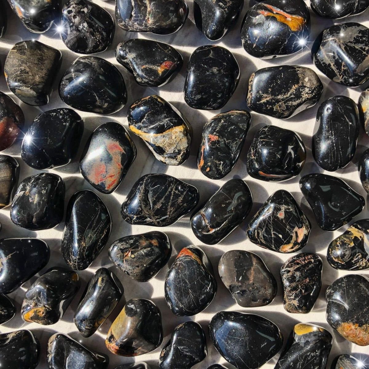 O ônix é uma pedra natural marcada pelo visual escuro e elegante, geralmente em tons de preto intenso, às vezes com faixas brancas. Muito usada em joias e acessórios.