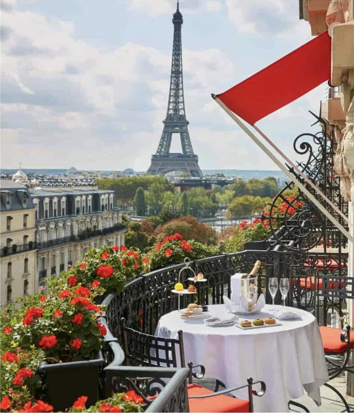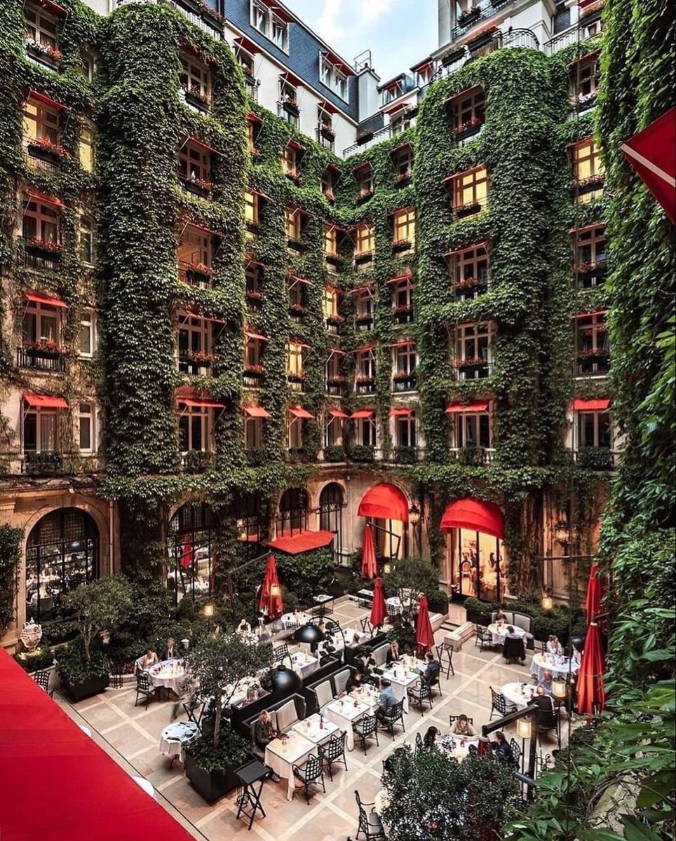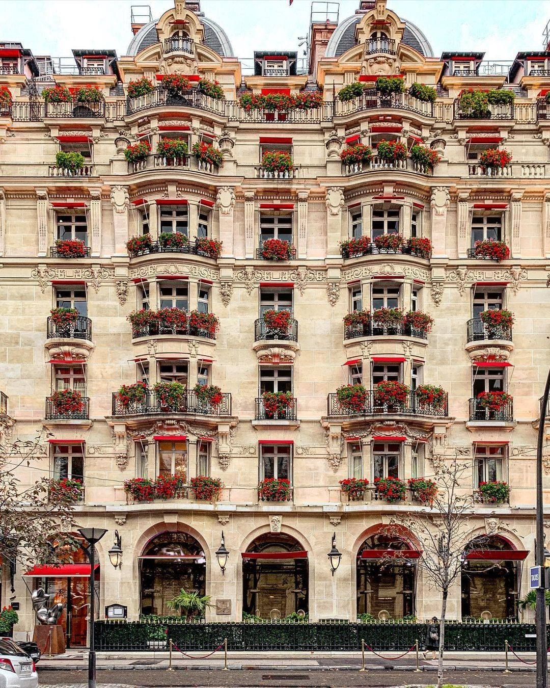 Um dos hotéis mais icônicos e luxuosos de Paris, localizado na Avenue Montaigne, coração da moda e do glamour da cidade. Fundado em 1913, é conhecido por sua fachada com toldos vermelhos e varandas floridas, e por hospedar celebridades, estilistas, artistas e membros da realeza.