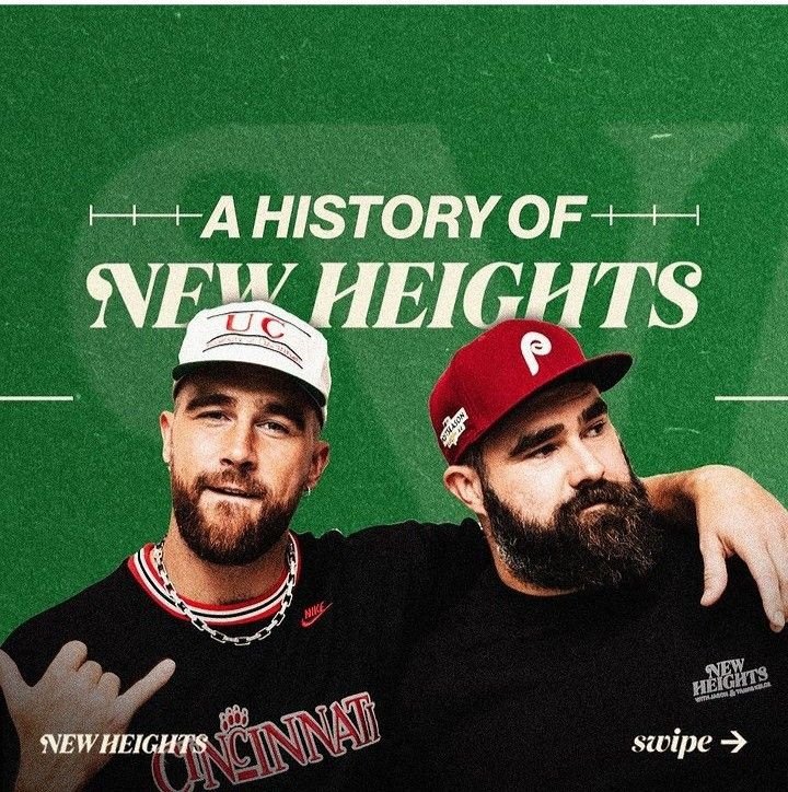 O New Heights Podcast é o programa apresentado pelos irmãos Travis e Jason Kelce, ambos jogadores da NFL. Eles falam sobre bastidores do futebol americano, cultura pop e momentos do dia a dia, misturando esportes com entretenimento de um jeito leve e divertido.
