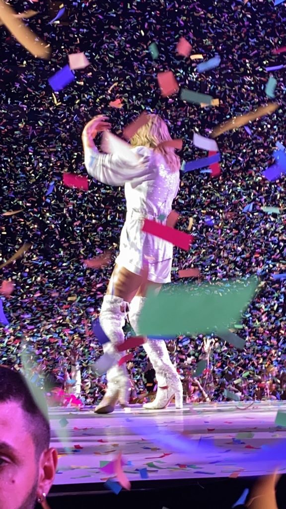 Depois, começou uma sessão acústica. “Inúmeras pessoas estão assistindo de todo o mundo hoje à noite”. Ela tocou Lover, We Are Never Getting Back Together e 22.