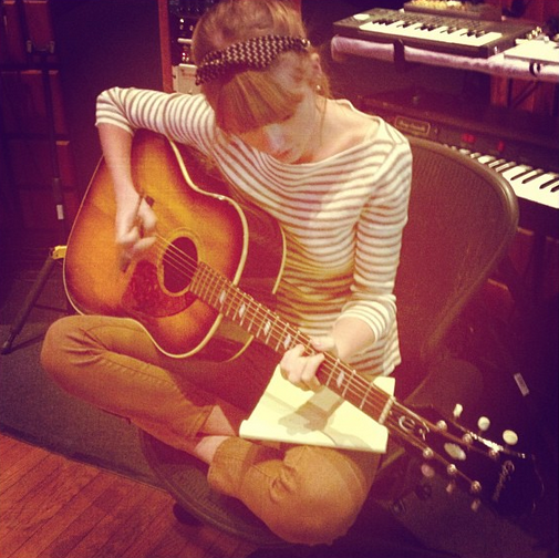 Ontem à noite (15/01), Taylor Swift postou em seu perfil no Instagram uma foto com a legenda “Em algum lugar em LA”. Na imagem, ela está tocando violão no que parece ser um estúdio de gravação. Confira: