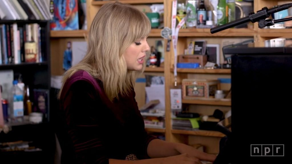 Enquanto Taylor Swift se acomodava para seu Tiny Desk, ela olhou para os mais de 300 funcionários do NPR e convidados: “Uau, são muitas pessoas em um pequeno escritório!” ela disse. “Eu amo isso!”. Então, depois de se apresentar, ela explicou seu objetivo: “Eu decidi encarar isso como uma oportunidade de mostrar pra vocês como as músicas eram lá no início, quando eu as escrevi.”