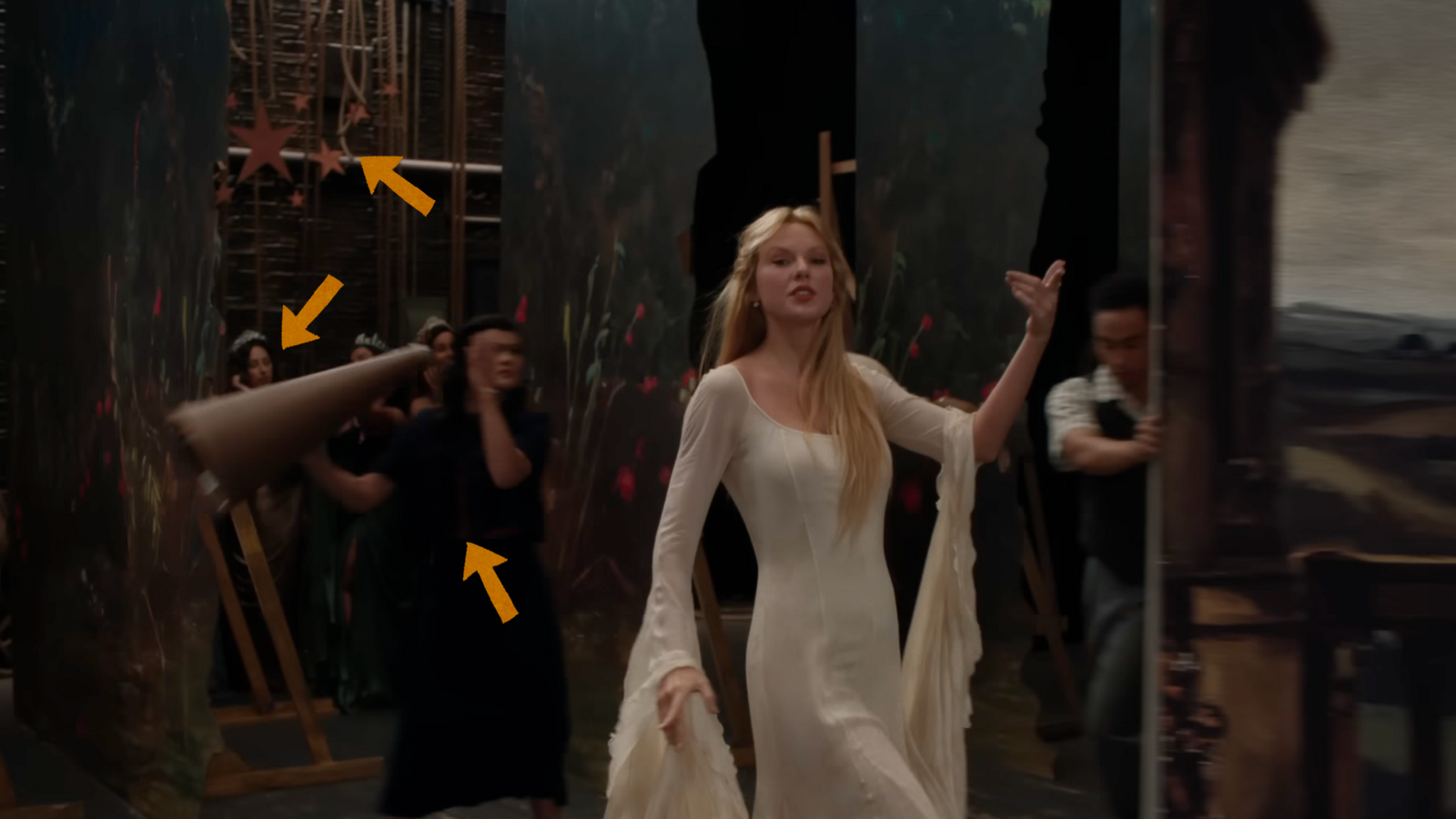 Na segunda cena, vemos a participação das Starlights (grupo que faz os backing vocals nas turnês de Taylor) e que retornam novamente no clipe mais tarde, um megafone, fazendo menção a letra: “I heard you calling, on a megaphone” e estrelas laranjas penduradas no teto, usadas durante o projeto de divulgação do álbum e que compõem a capa do CD Deluxe.