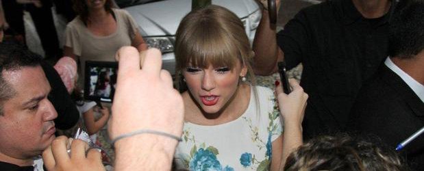O programa TV Fama foi ao hotel onde Taylor se encontra hospedada, o Sofitel, ontem, e gravou imagens da Taylor dando autógrafos, dos fãs cantando, e até mesmo de uma confusão que rolou entre os paparazzi! Confira o vídeo abaixo!